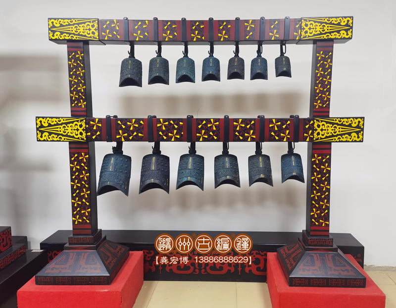 簡(jiǎn)介:13件2層古編鐘,是根據(jù)曾侯乙編鐘設(shè)計(jì)制作,編鐘為青銅鑄造,采用標(biāo)準(zhǔn)音高A=440Hz調(diào)音,音階G4—A6。編鐘大梁采用優(yōu)質(zhì)松木制作,表面噴漆,彩繪花紋